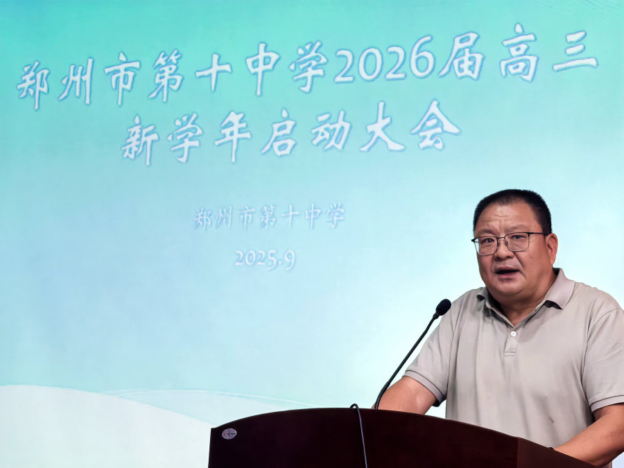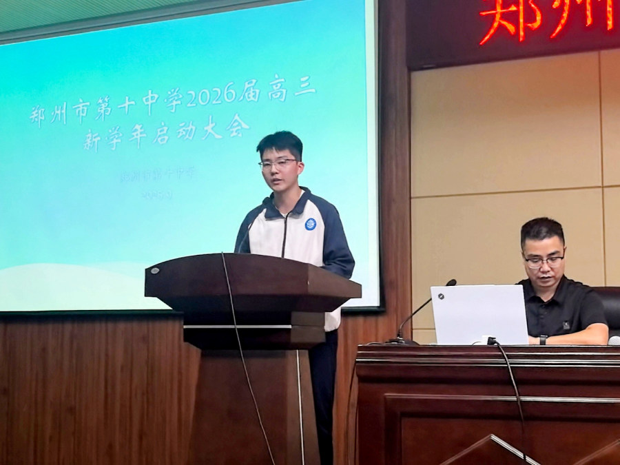 为激发学生的学习热情和拼搏精神,引导学生以乐观、健康的心态面对高三生活,形成家校共育的良好氛围,9月19日下午,郑州市第十中学在C座4楼报告厅召开了2026届高三新学年启动大会。校党委书记邵元辉,副校长张继波、朱荣涛,教务处主任高保军、副主任李鹏,家长代表和高三年级全体师生参加了会议。李鹏主持会议。