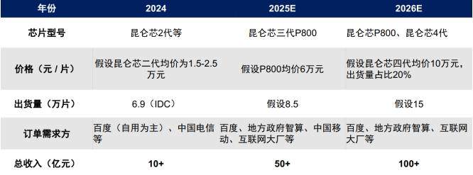 图:昆仑芯出货与营收测算 来源:IDC,国信证券