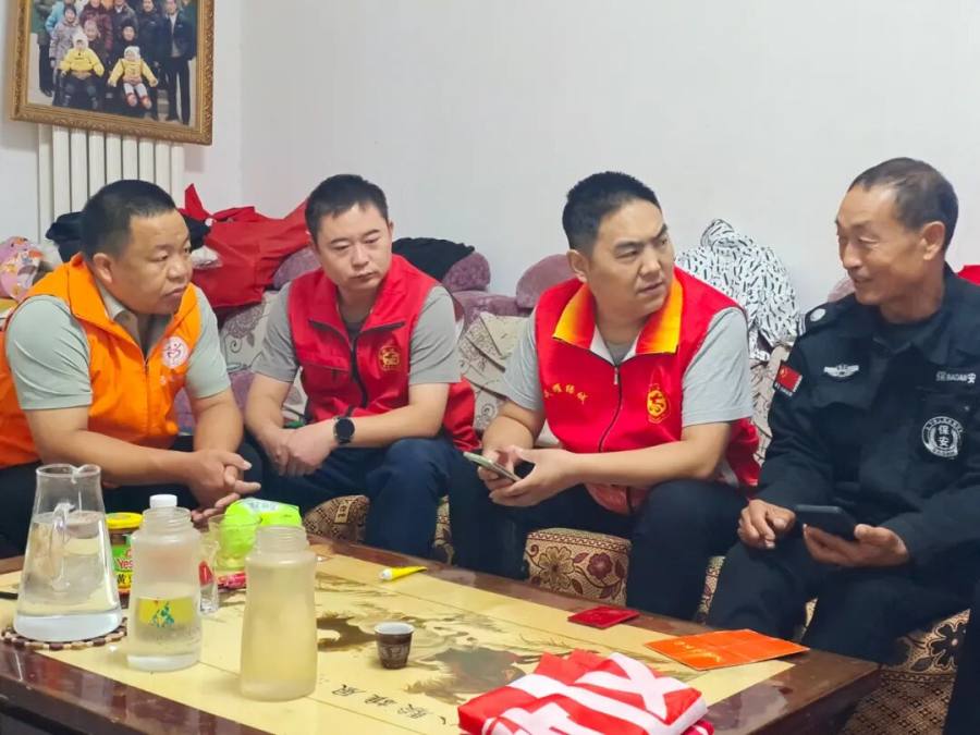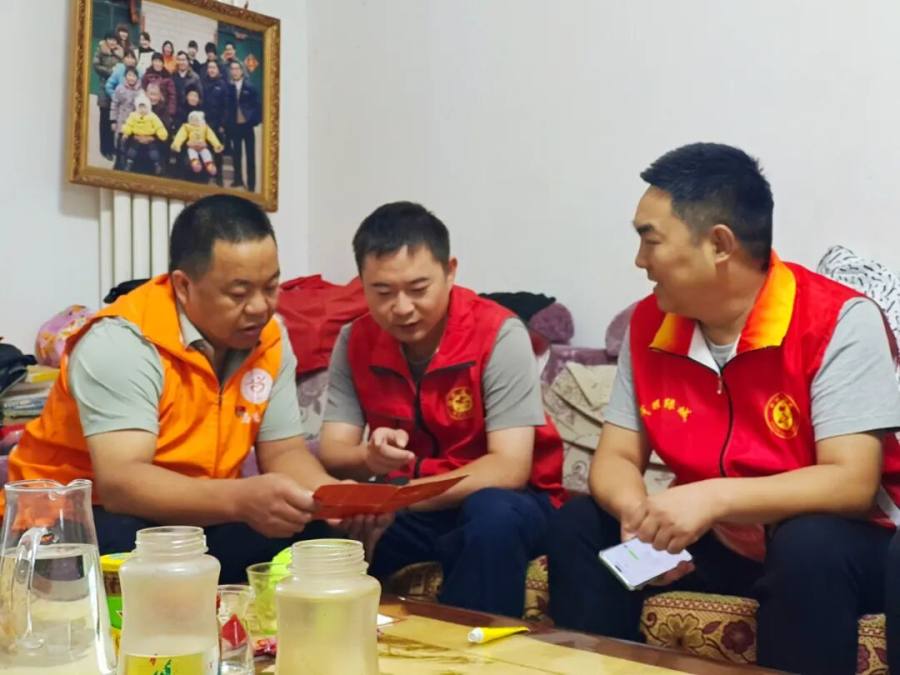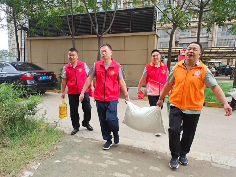 “戎耀绿城”中牟新区退役军人志愿服务队队员马沂峰、马纯亮、张俊峰、广惠街街道学苑社区党支部副书记刘强、学苑社区退役军人志愿服务队队长朱红鑫等一行5人驱车来到广惠街街道绿博花园三号院、五号院马玉生、朱运广家中,送去米、面、油等慰问品。