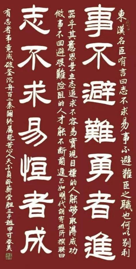 总而言之,做书法也像干其他事业一样,要持之以恒,孜孜以求,始终以传统为根基,师古不泥,不断创新,努力培养自己强大的心之力,自觉担负起传承中华传统文化的社会责任,把人民群众对美好艺术的向往当作自己的目标追求,做到“书中有人,书中有德,书中有文,书中有道”,创作出更好的书法作品回馈社会,向社会传递更多的正能量!