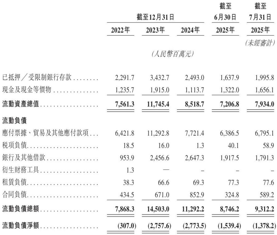 这不禁令人好奇,中润光能资金端是否真的捉襟见肘?从负债的角度看,该公司截至报告期各期末的流动负债净额分别为3.07亿元、27.58亿元、27.74亿元和15.39亿元,2025年6月末的资产负债率为76.0%,的确存在较大的债偿压力。