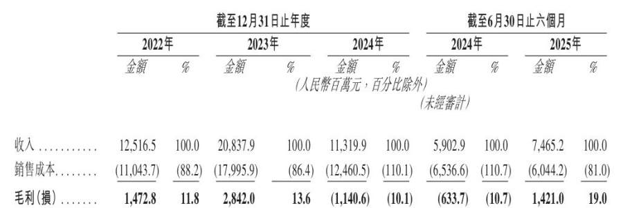 受P型电池片产品销售入不敷出,以及2024年录得物业、厂房及设备减值6.38亿元的共同影响,中润光能的整体毛利率也由2023年的13.6%降至2024年的-10.1%,直到2025年上半年才回正至19.0%。