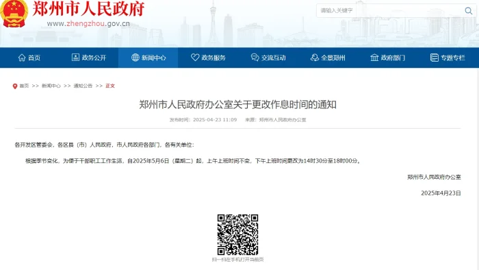 根据季节变化,为便于干部职工工作生活,自2025年10月9日(星期四)起,上午上班时间不变,下午上班时间更改为14时00分至17时30分。
