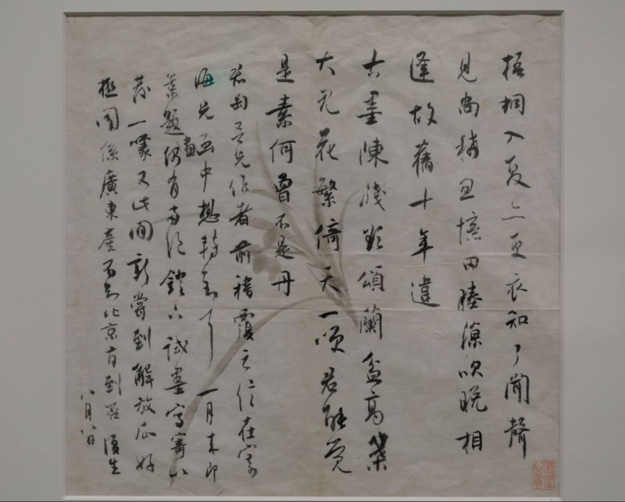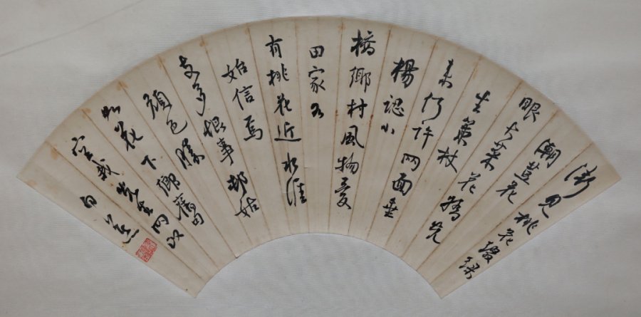 观其扇面,借弧而行,随骨而布。两端收束如关牒,中腰敞朗若庭轩。骨法先立,润彩后随,黑白相生,虚实相依。信札一幅,字若相问,相顾成行;章法无迹,气脉自成。凡此种种,皆从静里见力,于淡处得味。
