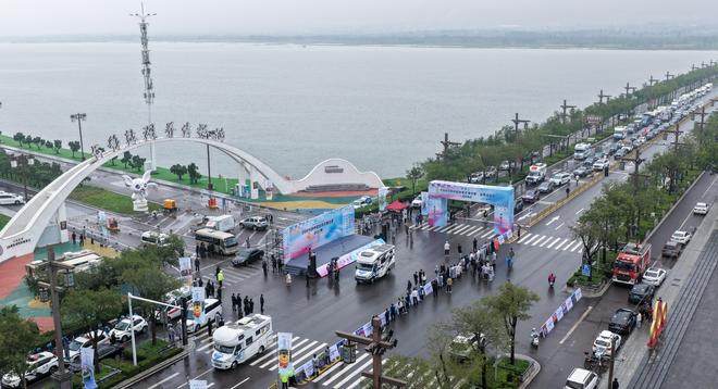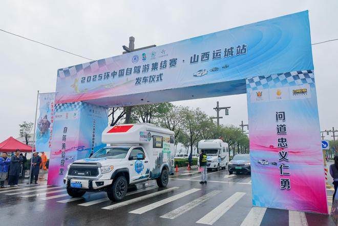 “自驾关公故里・问道忠义仁勇”。9月22日,细雨中的运城盐湖烟波浩渺、汹涌澎湃。来自北京、湖北、陕西、广东等地的80台房车与新能源车整齐列队,200余名车手齐聚七彩盐湖景区,共同见证2025环中国自驾游集结赛山西运城站发车仪式。