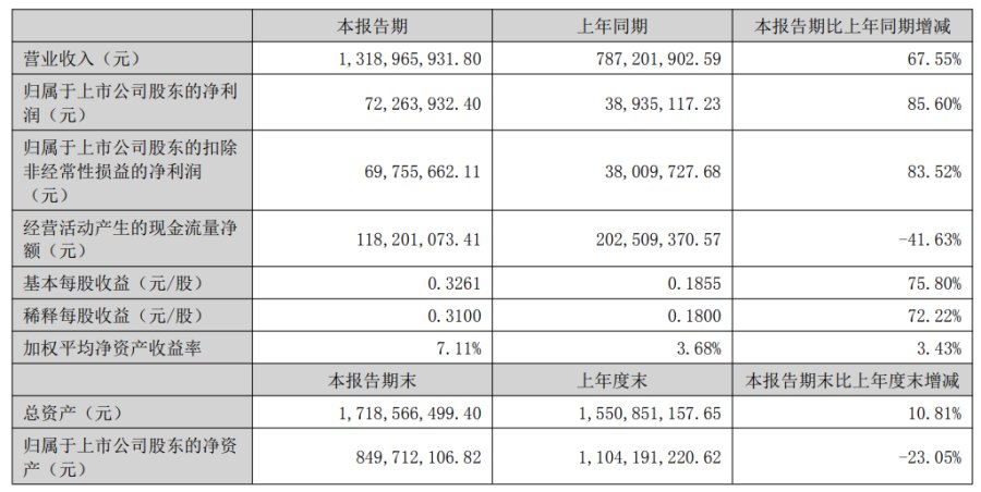 2025上半年,公司实现收入为13.19亿元,同比增长67.55%;期内利润为7226.4万元,同比增长85.6%。