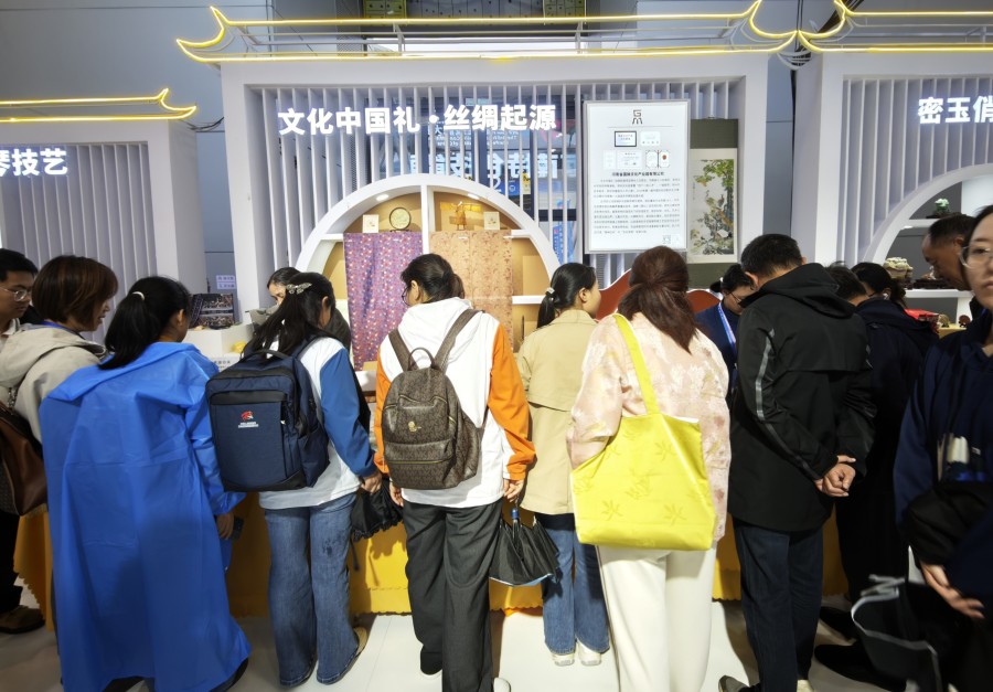 展区内,文创原始瓷《梦回千年》《四世同堂》与丝巾《丝绸探源》《织帛》迅速售罄,这“井喷式”的热销并非偶然。其背后,是国脉对 “技艺升华” 的极致追求,从“考古纹样”到“时尚符号”的技术转化。作品《梦回千年》《青台之上次第花开》将二里岗、青台遗址的考古元素,如商代青铜纹样、蚕形变体等,通过现代设计语言“翻译”并雕琢于瓷器之上,织锦于丝绸之中。这不是复制,而是一次深刻理解的再创造,是让沉睡千年的文明密码,通过当代技艺“活”在日用之中。