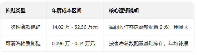 按每间客房两双拖鞋、年均七八成入住率计算,一家拥有300间客房的酒店,仅拖鞋一项就能节省数十万元成本。