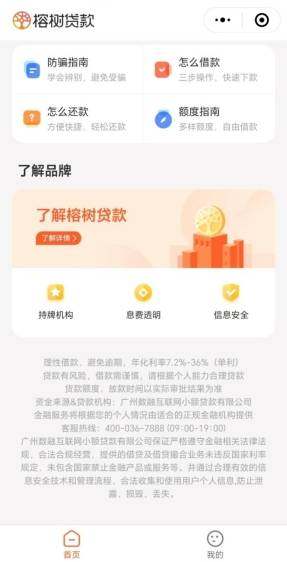 除了高费率问题外,榕树贷款还存在信息不透明的问题。在产品介绍界面,虽然提到了资金来源和贷款机构为广州数融互联网小额贷款有限公司(下称“数融小贷”),但并未详细列出所有参与的正规金融机构。同时,产品官网上的“金融服务将根据用户个人情况由合适的正规金融机构提供”的表述也显得过于笼统,无法给用户提供明确的预期。