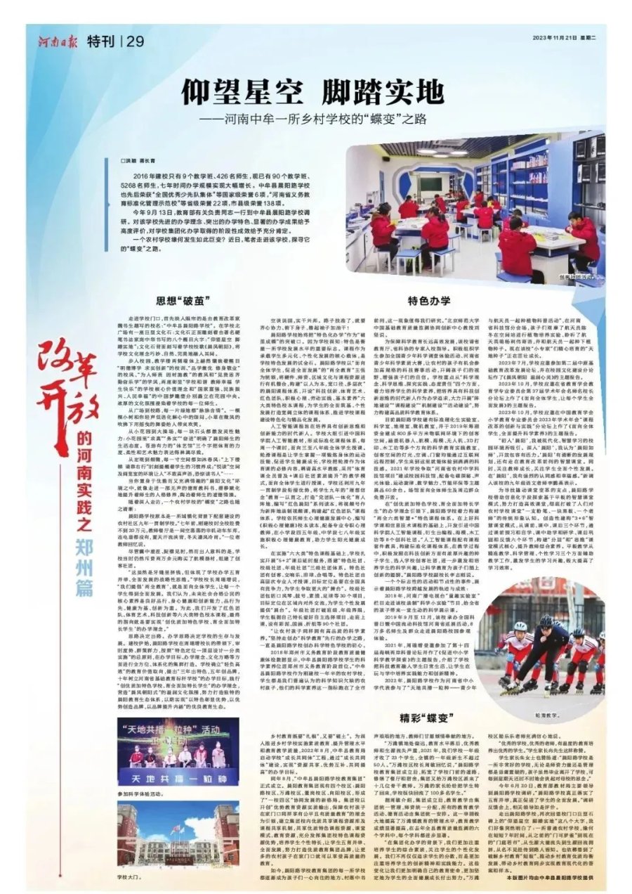 建校九年,学校办学规模实现跨越式增长,教育管理、教学质量、特色课程、多彩社团等方面成为区域教育的排头兵。学校先后获得“教育部义务教育教学改革实验校”“全国优秀少先队集体”“全国科普日优秀组织单位”“全国在线教育应用创新项目学校”“河南省义务教育标准化管理示范校”“河南省‘五育’并举实验学校”“河南省中小学党建带队建工作示范校”“首批河南省中小学数字校园标杆学校”等168项集体荣誉。