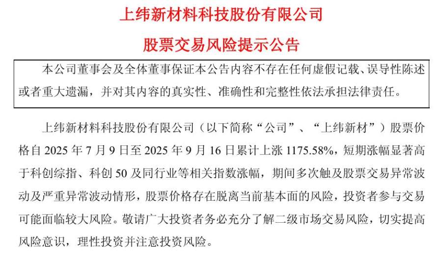 就在控股股东、实控人变更公告披露前几日,上纬新材还曾发布股票交易风险提示,称该公司7月9日至9月16日股价累计上涨1175.58%,多次触及股票交易异常波动情形,而这背后,是二级市场对具身智能机器人概念的追捧。