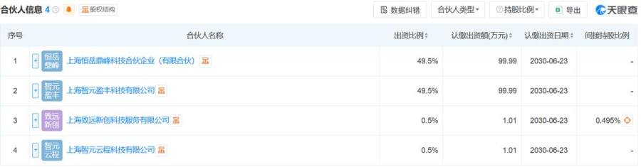 不仅如此,本次收购主体智元恒岳的成立时间恰好是收购公告发布前夕,且采用“双GP+有限合伙”架构,由智元创新全资子公司智元盈丰持股49.5%,邓泰华通过恒岳鼎峰持股49.5%,智元云程、致远新创作为执行事务合伙人,共持股1%。