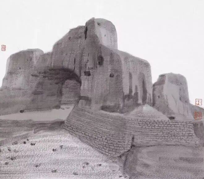 及至水墨写意,思路更开。大刷破墨,肌理如沙,如霜,如风起草尖;大片留白,与浓黑相抗,节奏鲜明。人物少笔,马形简笔,然势能充沛;提笔一转,便见奔突;收笔一敛,便得静候。广角俯仰,视域尽展,地平线与云带相向;远山若隐,近地若伏。观者立于画前,不觉身入风口,衣襟微动,耳畔似有马蹄回响。