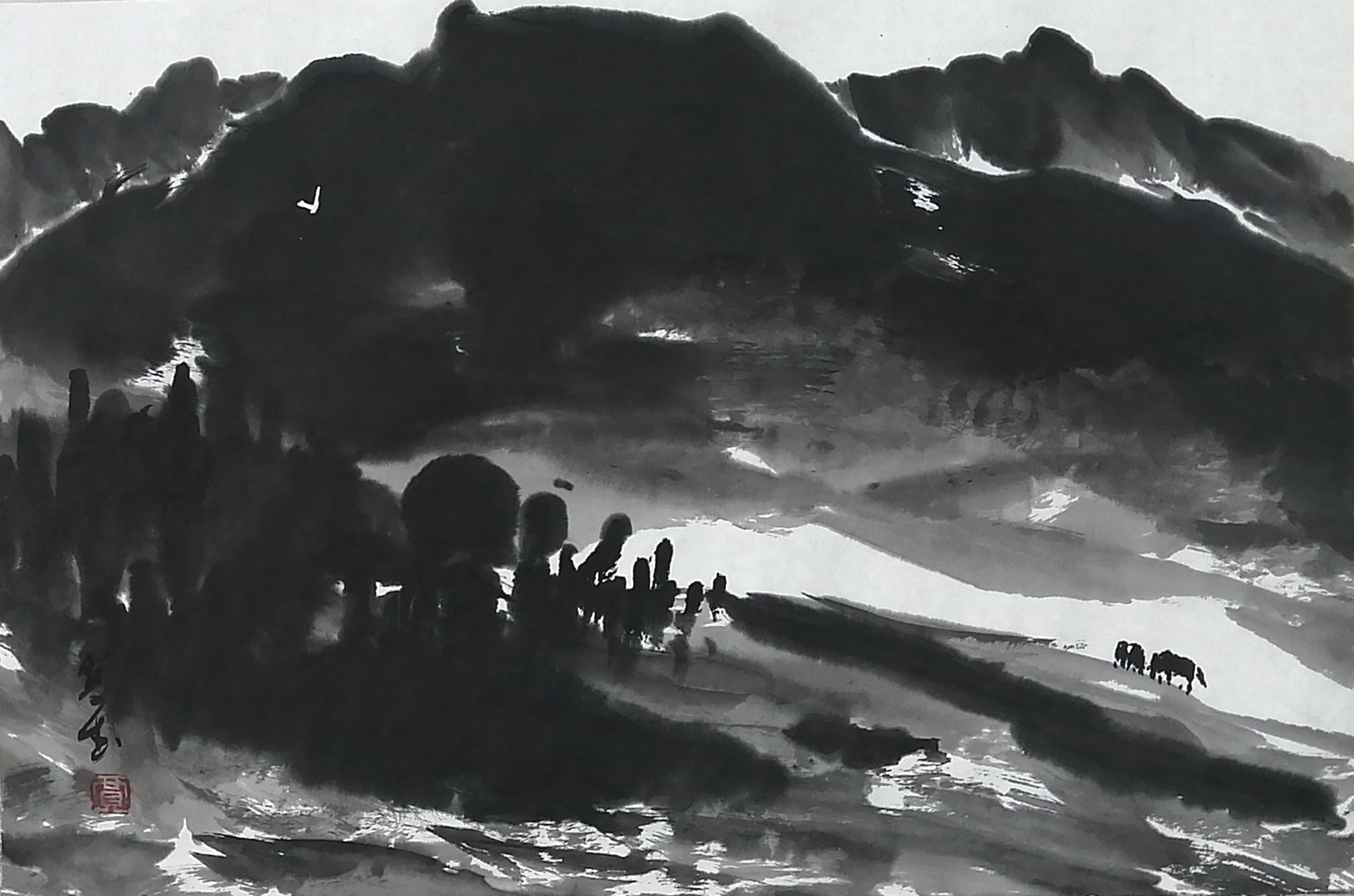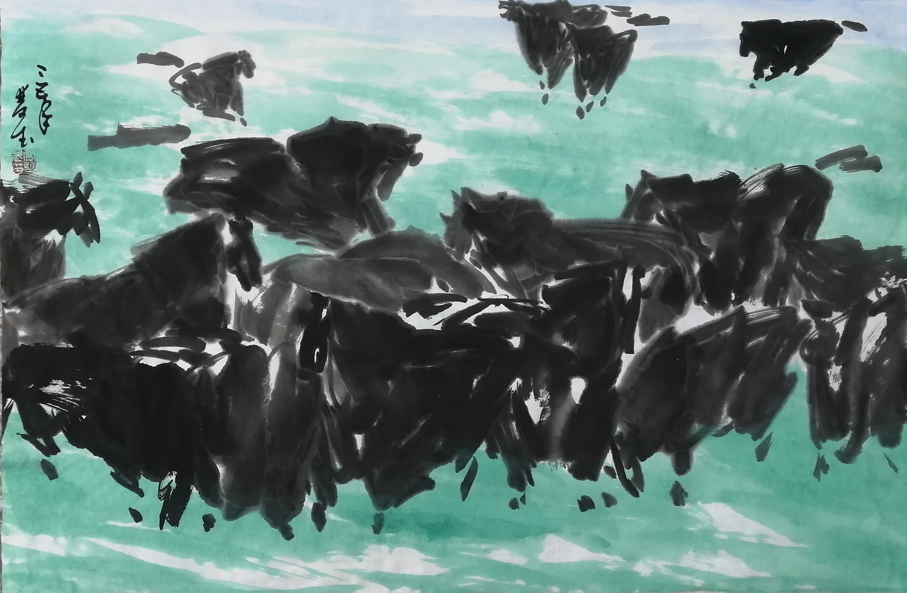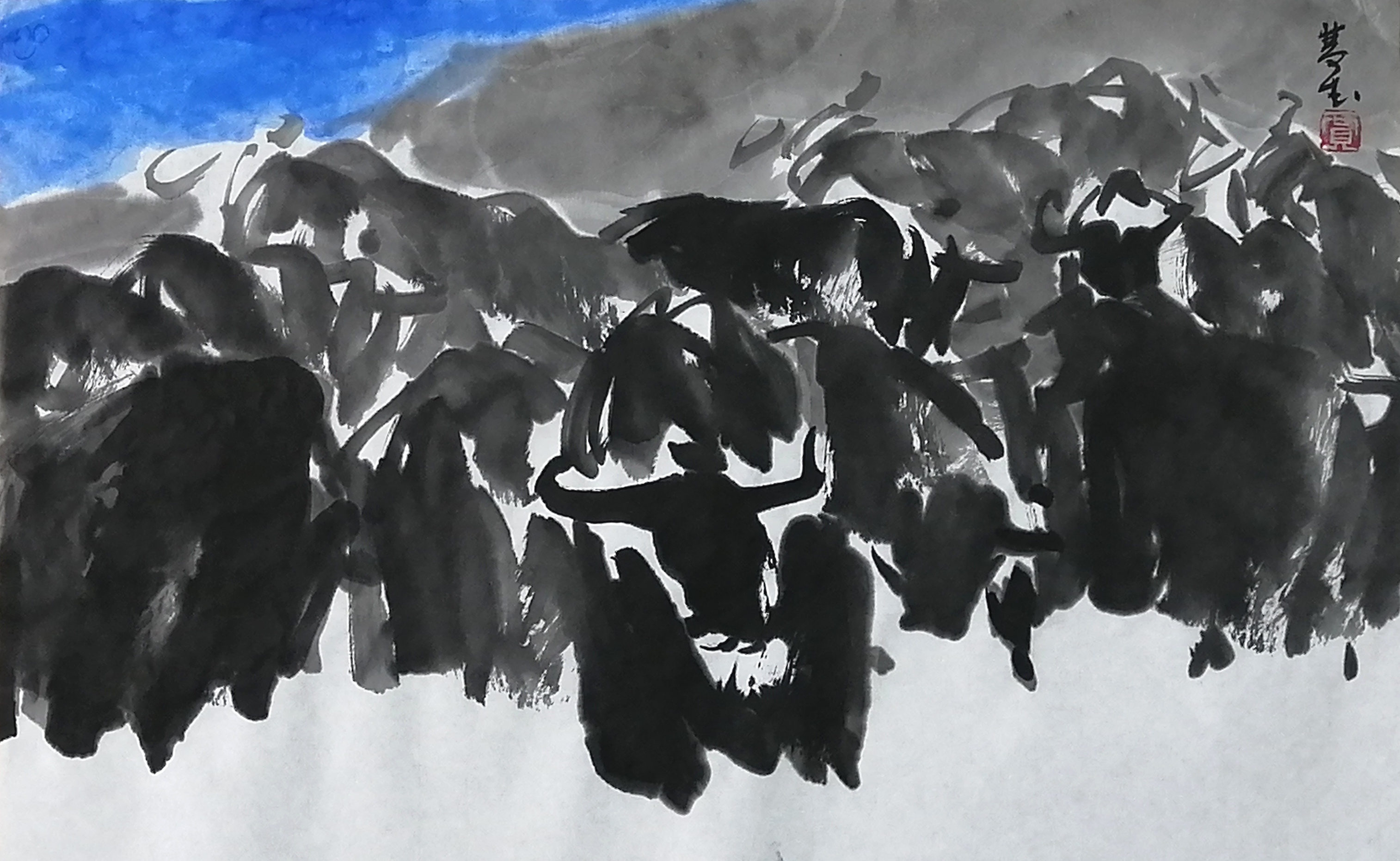 值此国庆中秋双节来临之际,让我们一同走进大写意画家贾双武的水墨世界,共同领略中国水墨的厚重与意境之美。贾双武的大写意水墨题材广泛,山水、花鸟、人物均有涉猎,且笔墨韵味均有他的独到之处。我们从他的笔墨中能深刻的感受到他对于所描绘物象的理解,那就是不只是停留在物象的表面,而是直达其精神层面,他对于物象的捕捉与描绘不拘泥于某一点的细致刻画,而是在于物象的整体性与整体感觉。可以说他笔下的马、牛、山等远远超出了物象本身,也可以说他画的不是表象,而是一种感觉,一种大的感觉与精神内涵。