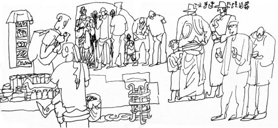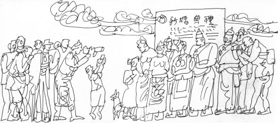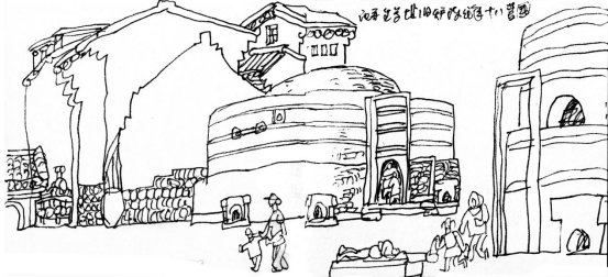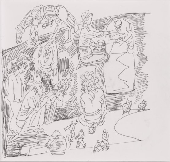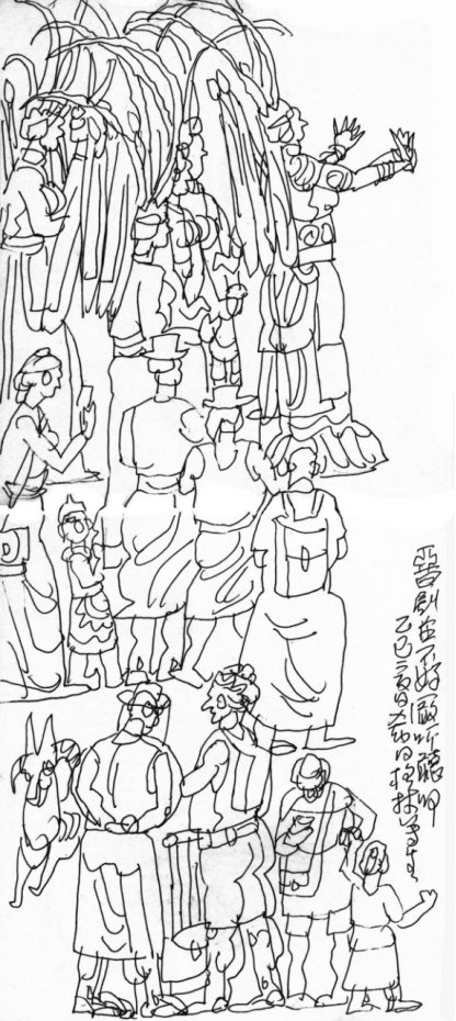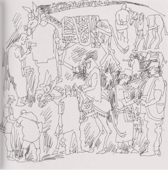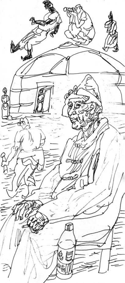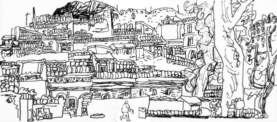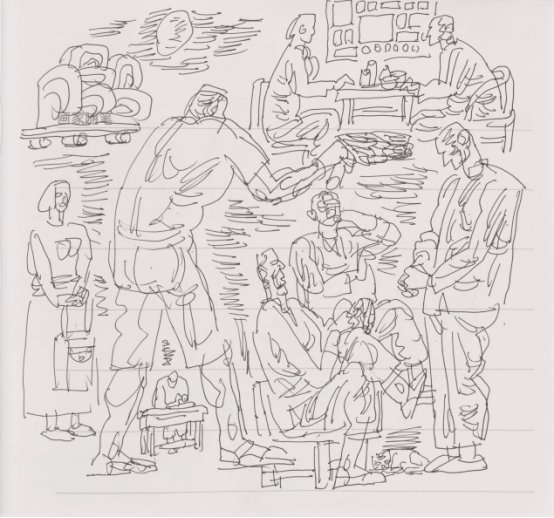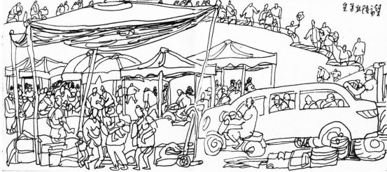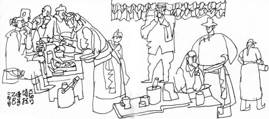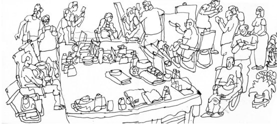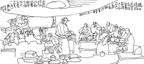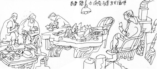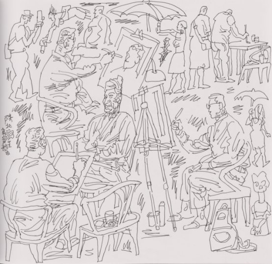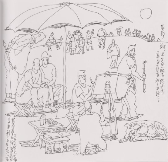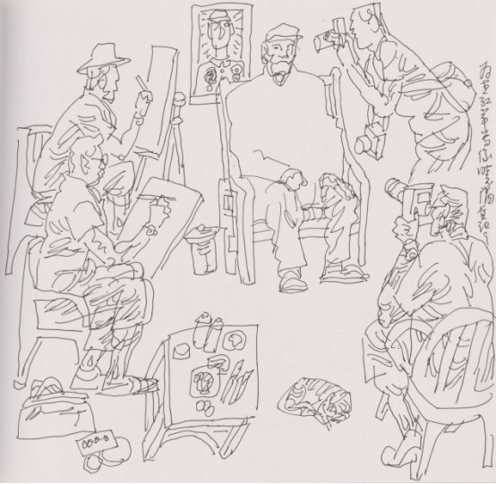 “走遍中国”第一阶段“行动”去掉了一切与写生创作无关的迎来送往,把有限的时间,从清晨早餐前到日落晚霞后,都用在了写生创作和创作讨论上,每天画十几张或二十张小速写的大有人在,画3~4张四尺整纸写生作品的也有,年过八旬的郭全忠、蔡超、尼玛泽仁堪称“老夫聊发少年狂”,70岁的刘健、范杨雄风矫健,60后张江舟、陈孟昕、梁占岩、李晓军是写生团的“少壮派”,是实实在在的“劳动团”;在第一阶段中,全程没有一次政府宴请接待,参团艺术家中有全国各大美术机构负责人,多位是曾任全国政协委员、厅局级以上职务的“官员”,但大家进入“走遍中国”行动后,就没有了官员身份,只有艺术家身份,彻底告别了以往那些“豪华写生团”的做派,回归画家本色,成为“作风团”。