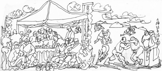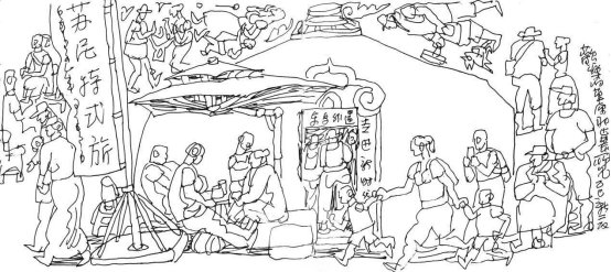 构想宏大——“走遍中国”是当代中国美术界第一次系统、全面、深入地对中国全域进行写生、创作的活动,旨在探索助力当代中国美术“从高原向高峰”突破新路径的“学术团”;是从启动之初就致力于实现“深入基层,扎根人民”的“深扎团”,在33天的写生创作中,大部分时间住在村里,朝夕面对壮美河山、基层百姓;是关切时代命题和契合中央工作重心,践行新时代党的文艺政策的“践行团”。第一阶段,重点写生了沿途的抗战遗址,未接受各地政府的一次工作宴请。如何突出各地的特色,进而实现“中国特色”是贯穿始终的命题,在内蒙古写生团既参加了内蒙古自治区的第35届草原那达慕大会,又深入基层参加了嘎查(村)的那达慕大会;观摩、祝福蒙古族布里亚特婚礼,探访恩和俄罗斯民族乡,感受祖国多民族文化。