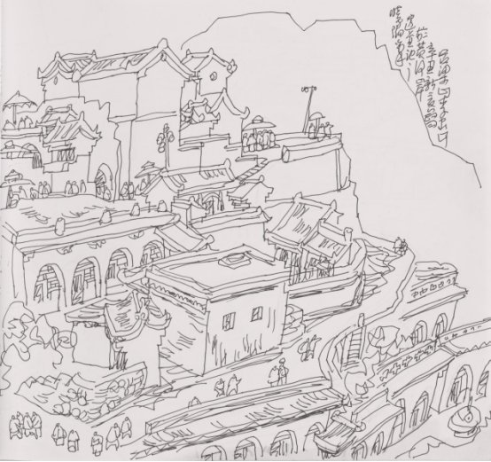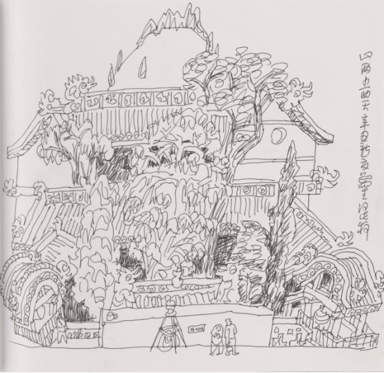 山西的自然风光同样让人感受到“天高地迥觉宇宙之无穷”。特别是令人震撼的乾坤湾,黄河一改奔腾咆哮之态,变得浩瀚幽远。在高原群峰之中,夕阳下河面泛着光华,黄河呈“8”字形穿行于群峰之间,两个巨大的山脊与黄河交错,山、河相交,宛如墨绿银龙,俨然是天地自然的阴阳八卦图,动静相生,生生不息。在场的艺术家们流连忘返,无一不被这天地壮阔所感动!在老乡家里和乡亲们拉家常,到煤矿井口和矿工们拉家常,进行写生创作。