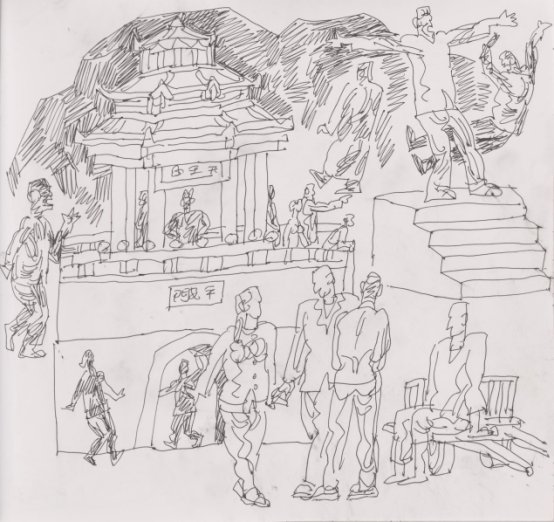学术领先——“走遍中国”在艺术创作上打通了写生与创作的瓶颈,现场既有小本子水笔速写,也有四尺整纸写意创作;既有白天写生,晚上整理、创作,也有写生回家后抓紧整理创作大作品的情况。充分发挥当代美术经典艺术家个性化艺术语言的作用,助力破解当代美术“从高原向高峰突破”的难题。写生创作探索多在阳光明媚的白天进行。难得与艺术家老朋友相逢,大家珍惜相聚时光,挑灯夜谈,将多年的学术难题和新鲜的创作感受进行一轮又一轮的深入研讨,涉及东西比较、时代异同、个性把握、笔墨锤炼、前辈往事、同侪趣闻……大家真知灼见频出,妙语连珠,创作探索与理论自觉贯穿全程。第一阶段的三个团,每个团除平时的“夜话”外,都专门举行了一次学术研讨会,将大家深入思考后的感想和见解集中交流,踊跃的发言、犀利鲜活的感受汇聚成珍贵的学术资源。