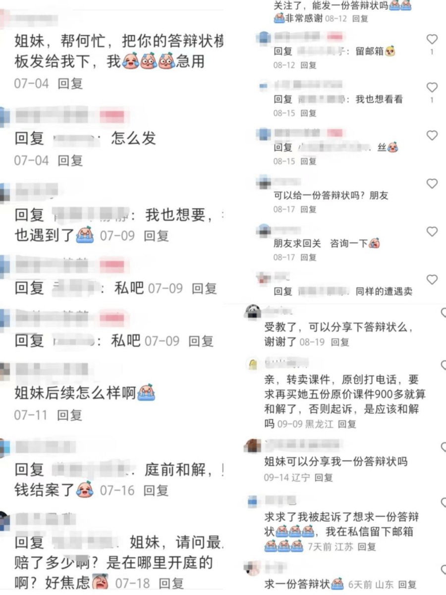 当辛辛把这段经历发到小红书,没想到帖子迅速引发大量共鸣,浏览量超过40万,近千人在评论区诉说相似遭遇,纷纷跪求“答辩状”参考。