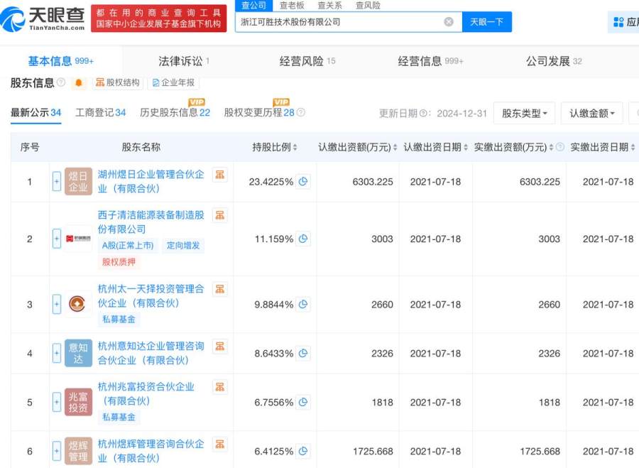 天眼查App信息显示,可胜技术成立于2010年5月。目前,该公司的注册资本约为3.6亿元,法定代表人为金建祥,主要股东包括湖州煜日、西子洁能(SZ:002534)、太一天择、意知达、杭州兆富、杭州煜辉等。