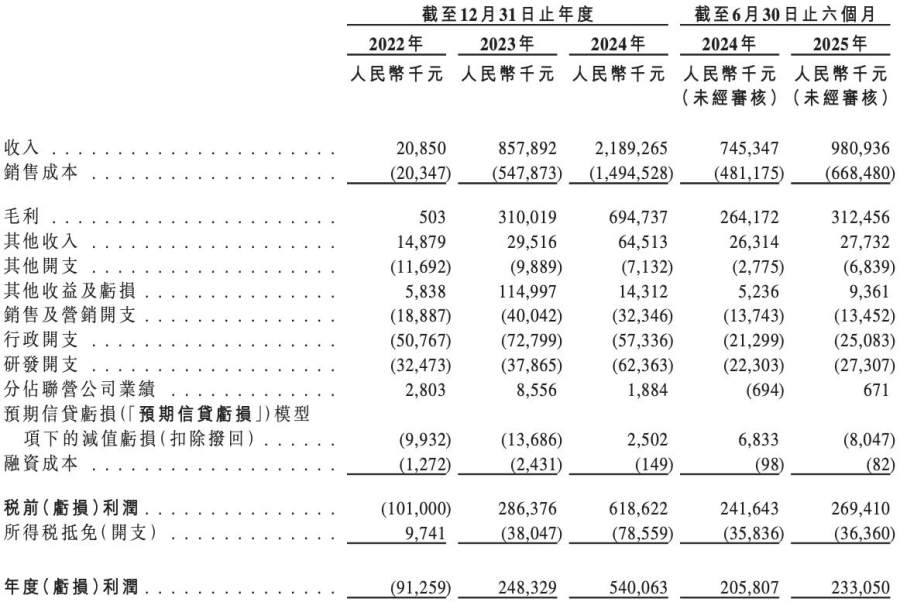 业绩方面,可胜技术2022年、2023年、2024年度和2025年上半年的营收分别约为人民币2085.0万元、8.58亿元、21.89亿元和9.81亿元,净利润分别约为-9125.9万元、2.48亿元、5.4亿元和2.33亿元。