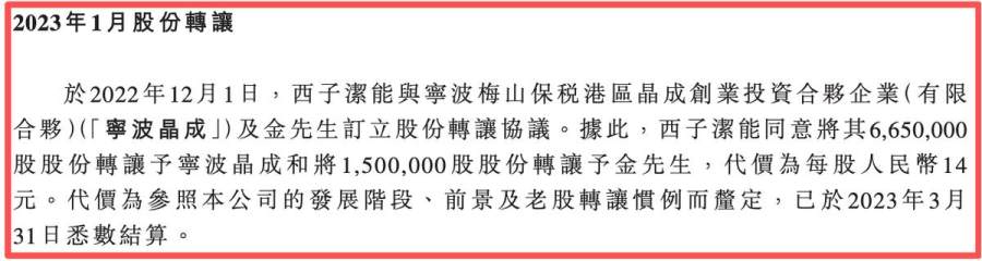 另据贝多商业了解,亦有股东对外转让所持可胜技术的股权。据招股书披露,2022年12月,西子洁能向宁波晶成、金建祥分别转让665万股、150万股,每股成本为14元,分别作价9310万元、2100万元,合计约1.14亿元。