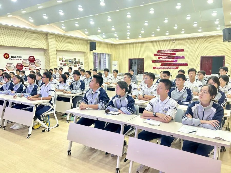 随后,张兴成法官紧扣文件中“聚焦青少年成长需求,以宪法教育为核心,以民法典教育为重点”的要求,采用“案例剖析+法律解读”的鲜活形式展开讲解。围绕“低龄暴力”“网络打赏”“跑分陷阱”“聚众斗殴”等青少年高发法律风险场景,结合“邯郸少年被害案”“海底捞小便门”等典型案例,将《中华人民共和国未成年人保护法》《中华人民共和国预防未成年人犯罪法》等法律知识融入真实场景,特别解读了即将于2025年11月1日施行的《中华人民共和国法治宣传教育法》中关于青少年法治教育的重要规定,让在场师生清晰把握校园、家庭、社会中的法治边界。