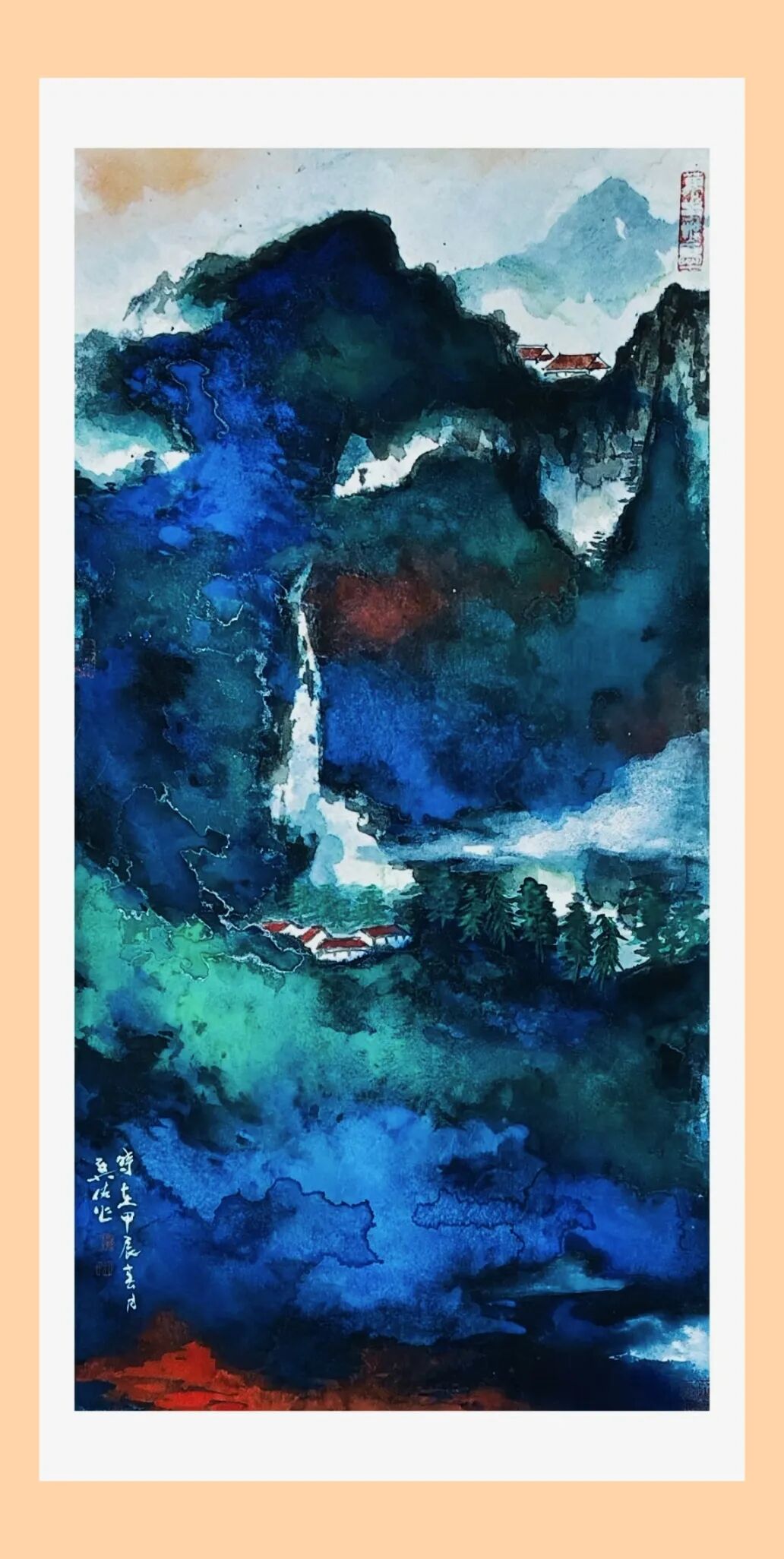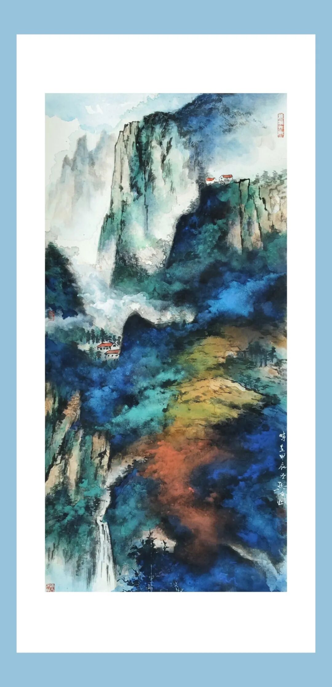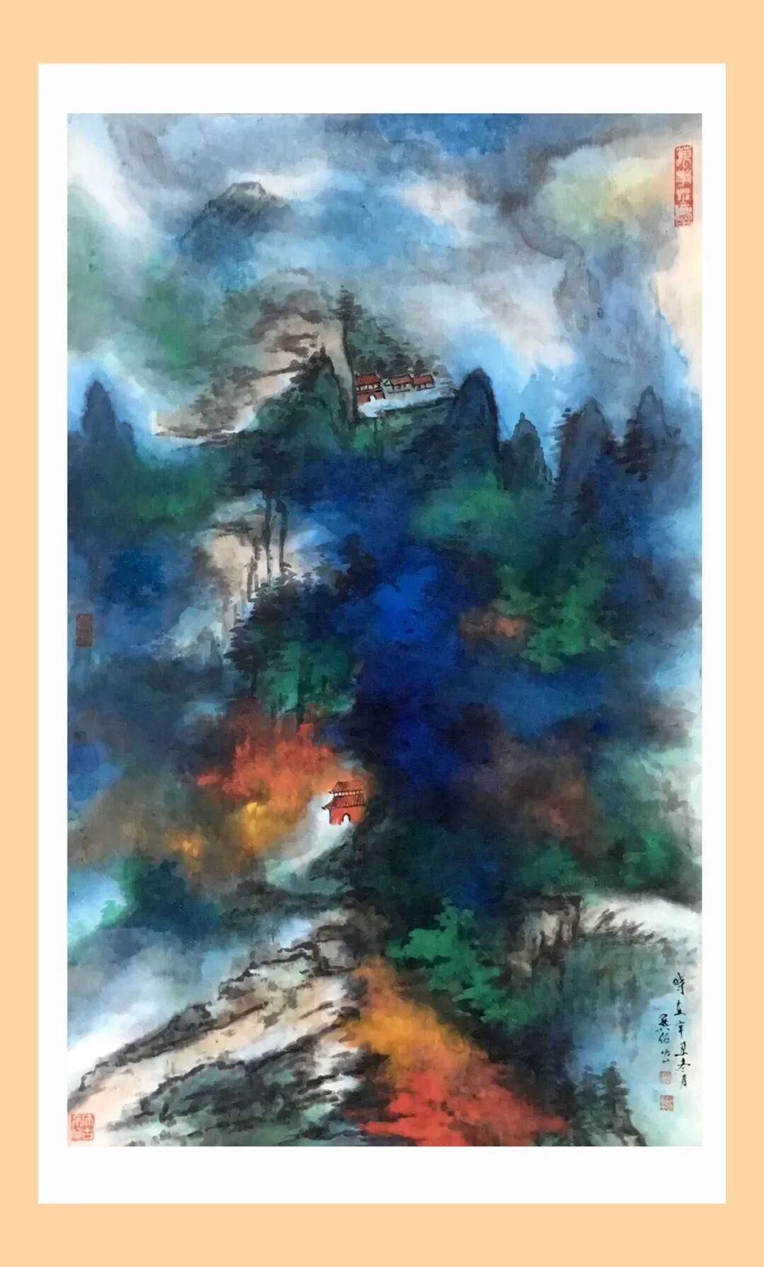 近年来,先生顺延着山水画发展方向的脉络,努力以传统技法与人文精神为基础,融合现代抽象感,精心揣摩着传统绘画“水墨”与西方绘画“色彩”的真谛。他的新作独标新韵,时而粗犷豪放、枯槁苍茫,时而彩墨淋漓、缤纷有致。既有不失传统的笔墨,又有赏心悦目的色韵,且层次丰富、浓淡相宜、华而不浮、厚而不腻,令人耳目一新,为之震撼。