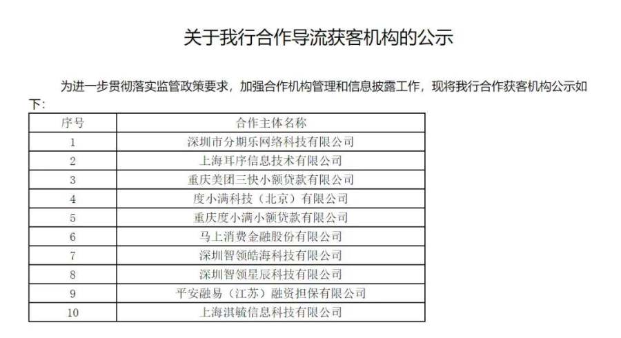 近日,吉林亿联银行再次在官网披露了其导流获客合作方名单。