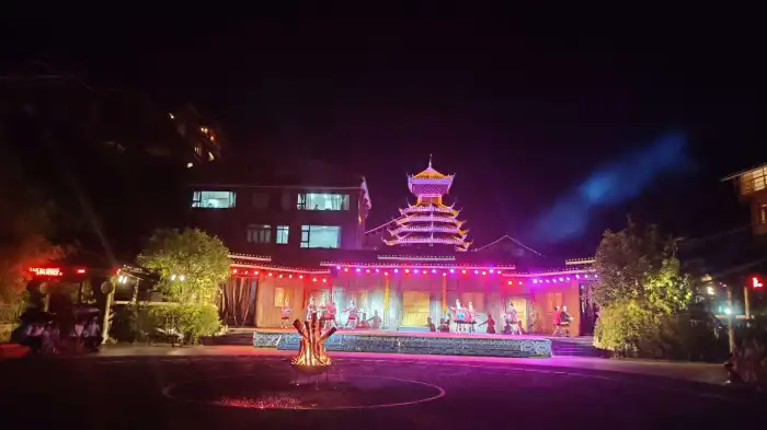 在加车村路边一家客栈订好房间,我们轻松观景游玩。前几天在湘西爬山的疲惫感已荡然无存,孩子们跳着、笑着、欢呼着,在路边撒欢儿,大人们背对梯田扭动身躯摆拍各种动作。我的职责就是给爱人照相,一处景观往往要拍二十来张供她筛选——呵呵,反正又不费胶卷。