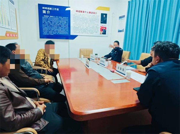 三百多个日日夜夜,从白天到深夜,在呷呷调解工作室,反复梳理当事人十几年的情感与财产脉络是常事;精心分析研判矛盾根源,寻求调解突破点成日常。不放弃、不敷衍!呷绒降泽和联调小组民警辅警、工作人员没有气馁,他们不厌其烦往返两个乡镇,一方面耐心倾听双方诉求,记录下每一个关于子女抚养、财产分割的细节争议;一方面上门走访,从“情、理、法”三个层面,对甲某讲法律责任,对乙某谈子女未来,对亲属说邻里和谐,用“拉家常”的方式逐步缓解对立情绪。