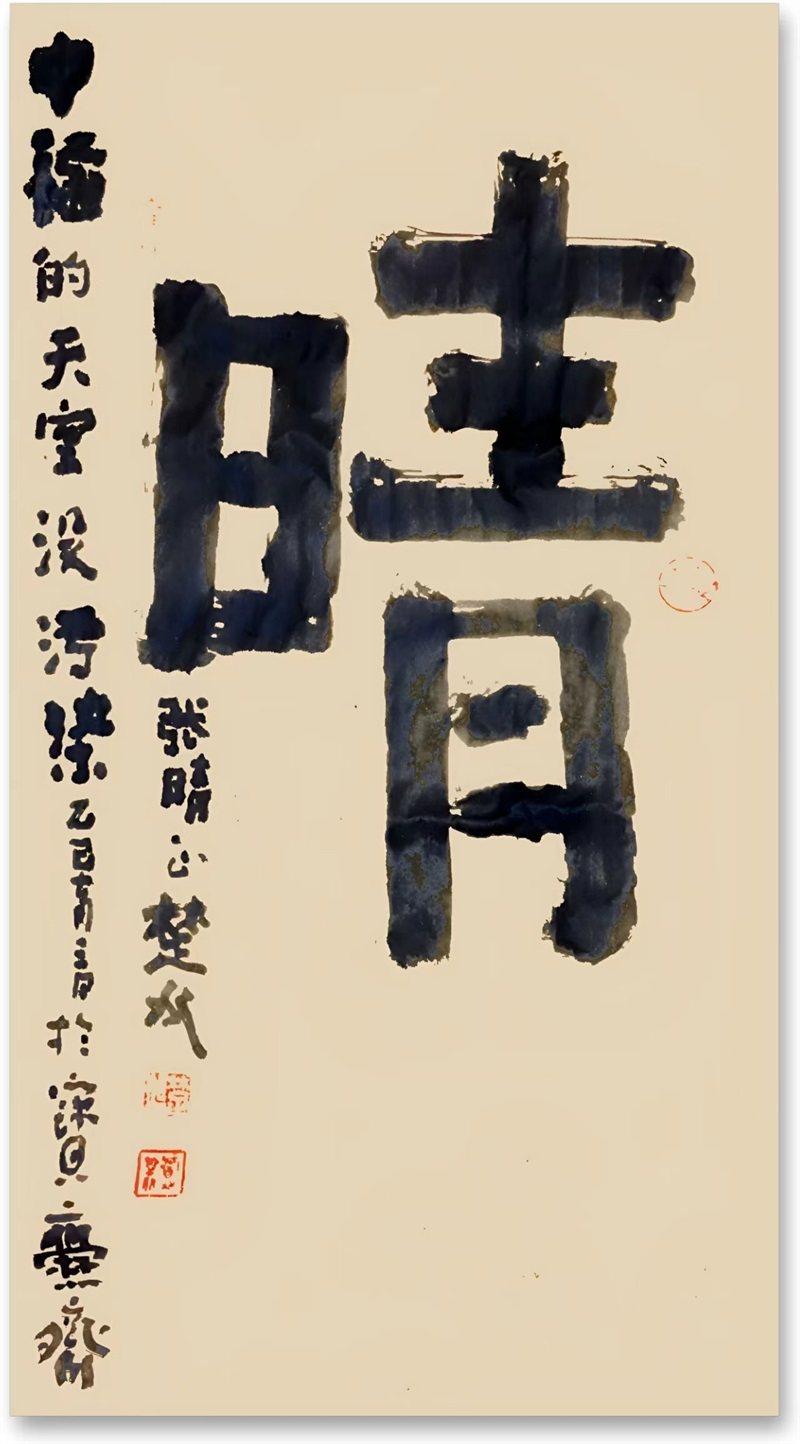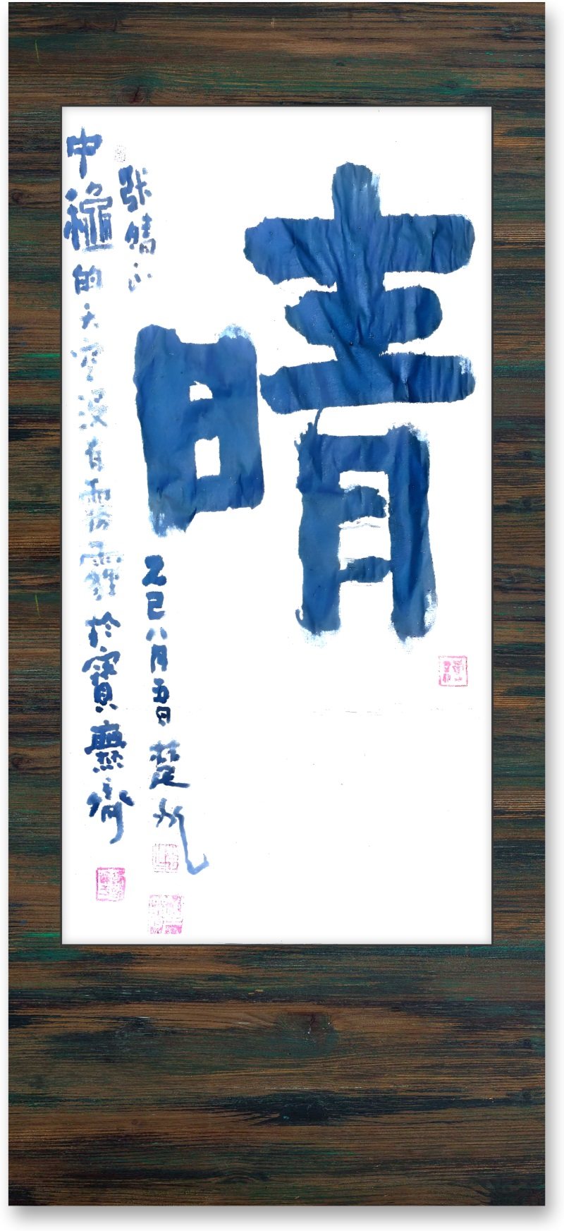 这几天张晴回京了,正适老楚同志舞文弄墨的最佳状态,于是乎一挥而蹴,晴:梦里的天空永远蔚蓝。当即交去快递小哥,谁知张晴收到时,晴的上半部却缺了一角,蔚蓝的天空缺一角,难免让人遗憾。再写蔚蓝的天空吧,也无法弥补缺去一角的遗憾,就要中秋了,索性改之为中秋的天空没有雾霾。
