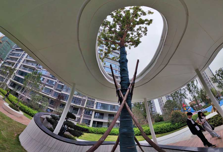 南阳盆地一小区内栽培的两棵金丝楠树长势良好,珍稀南方树种在长江以北地区能够栽培成功实属不易,寄希望于两棵金丝楠能成为栋梁之材。新华社签约摄影师孙宇摄