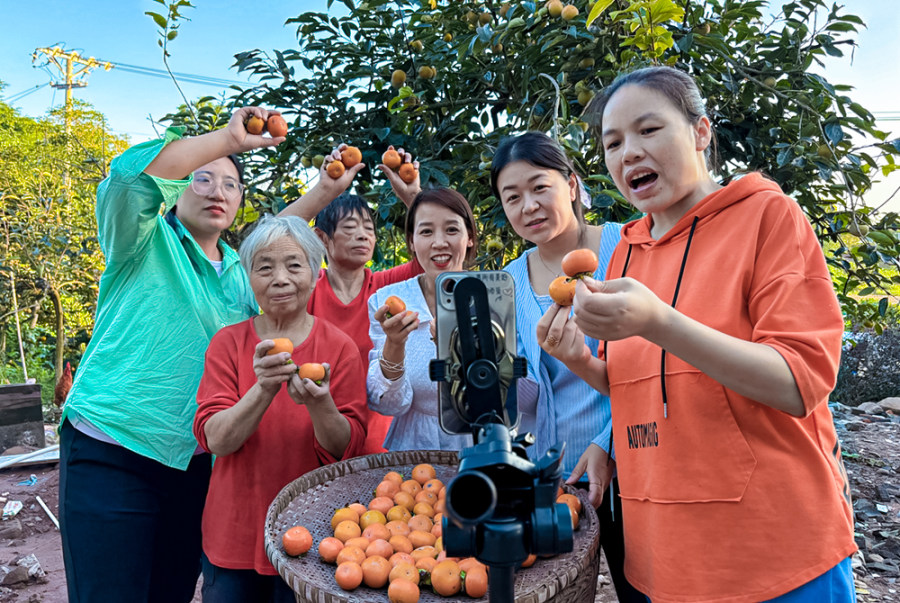 “香甜可口的脆柿成熟了,欢迎大家购买!”9月25日,四川省南充市营山县内的多名女主播齐聚回龙镇金竹村村民李华英家的柿子林下,有的在林下开起了直播销售,有的带领市民穿梭于林间体验采摘乐趣,宁静的树林一下子热闹了起来。