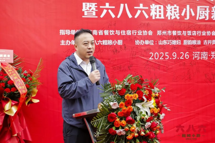 郑州餐协副秘书长、河南省餐协美食观察团团长、美食权说创始人孙新权,现场解读六八六 “火爆出圈” 的密码:“烙馍卷菜是河南人的心头爱,而餐厅基业长青离不开‘菜品’与‘人品’,六八六正是最好的证明。26 年前赵总开创粗粮小厨品类,如今正引领这个品类向规范化、品牌化、城市名片化发展,这正是河南餐饮需要的标杆力量。”