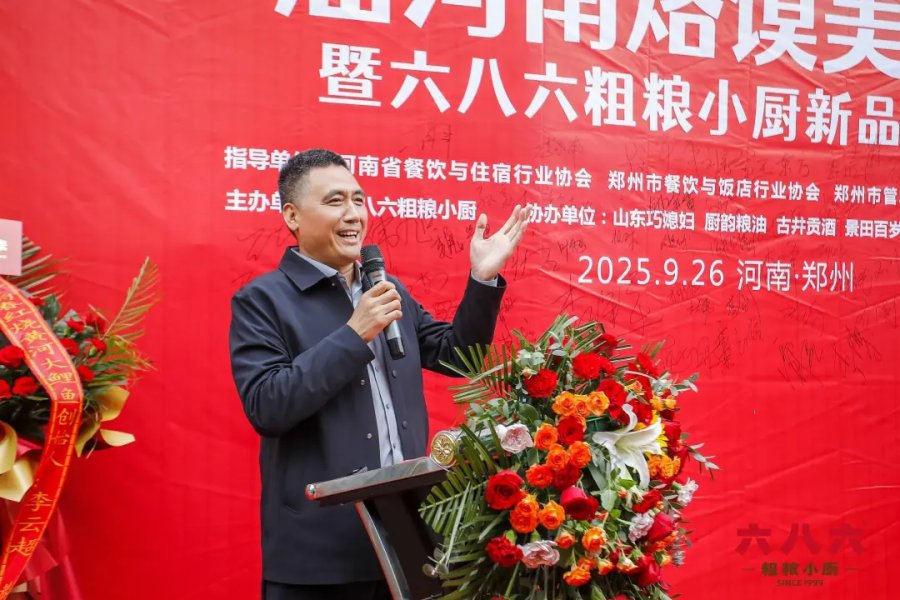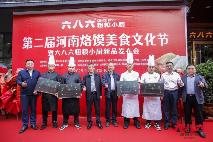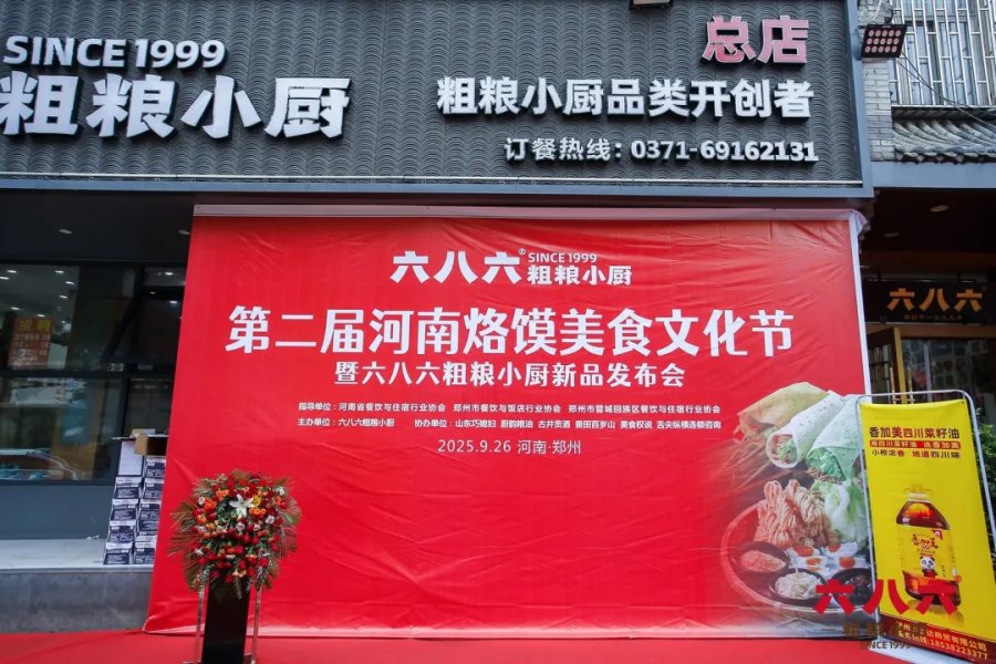 2025年9月26日上午,由河南省餐饮与住宿行业协会、郑州市餐饮与饭店行业协会、郑州市管城回族区餐饮与住宿行业协会联合指导,六八六粗粮小厨餐饮公司主办,山东巧媳妇食品集团、厨韵粮油、古井贡酒等单位协办的 “第二届河南烙馍美食文化节暨六八六粗粮小厨新品发布会”,在郑州城东路六八六粗粮小厨总店成功举办。