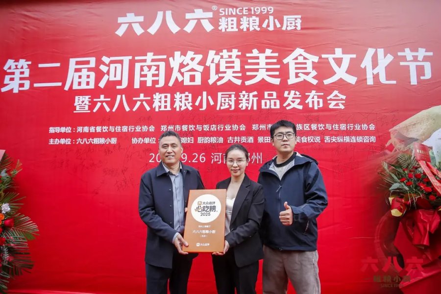 活动现场还举行了荣誉颁发仪式:美团郑州城市经理叶东旭为六八六粗粮小厨颁发 “2025 年大众点评必吃榜上榜餐厅” 牌匾,河南省餐饮与住宿行业协会副会长蒋辉、刘志全等为其颁发 “河南名菜”“河南名店” 荣誉。郑州餐协副秘书长、美食权说创始人孙新权现场解读六八六 “火爆密码”,指出:“餐厅基业长青离不开‘菜品’与‘人品’,六八六不仅守住了河南烙馍的文化根脉,更以规范化、品牌化运营,将‘粗粮小厨’从单一品类打造成郑州餐饮名片,这正是行业需要的标杆力量。”