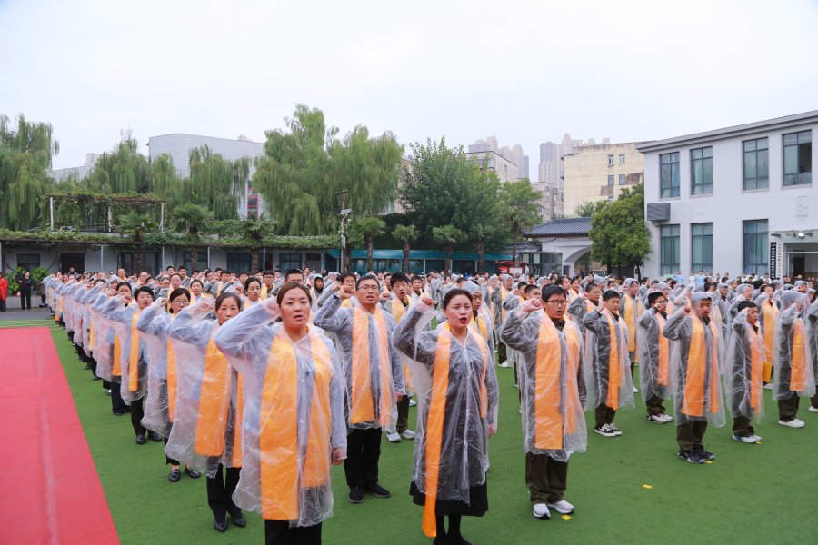 随着亚献官、终献官完成敬献之礼,先锋教育各校区代表依次敬献花篮,以示尊崇。全体人员诵念立志文,铿锵誓言,响彻校园。