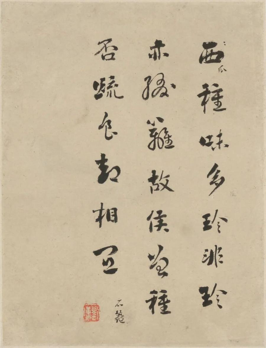 题材取园蔬,情味在家常。无雕饰,无奇观,唯见清真。以寻常成高致,以平淡见新工;一枝一蔓,皆具呼吸。此幅不求繁华,只守清正;不矜艳彩,只贵雅度。可入案头,可伴茶烟,气象恬和,风神自远。