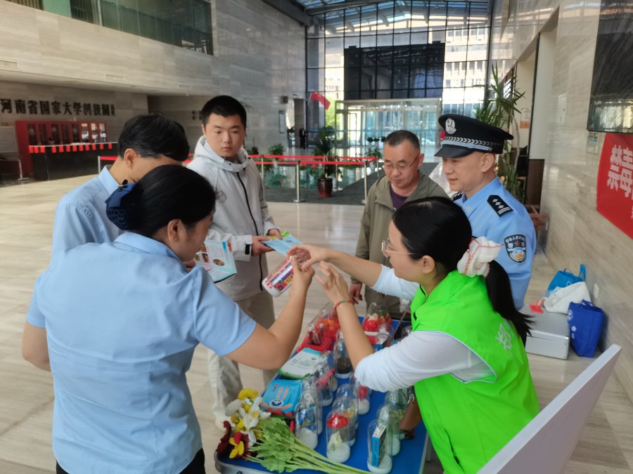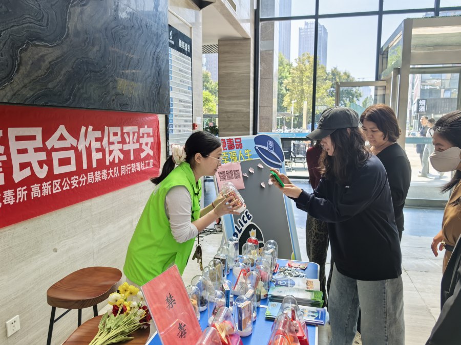 9月25日,河南省大学科技园一楼大厅内热闹非凡,“禁毒微驿小站”正式开张运营。本次活动由郑州市公安局禁毒支队指导,高新分局禁毒大队联合郑州市白庙强制隔离戒毒所、同行禁毒社工共同主办,主要通过仿真毒品模型展示、公众号扫码学习、标语打卡及礼品发放等形式,让园区人员在家门口收获禁毒知识,实现禁毒宣传常态化。
