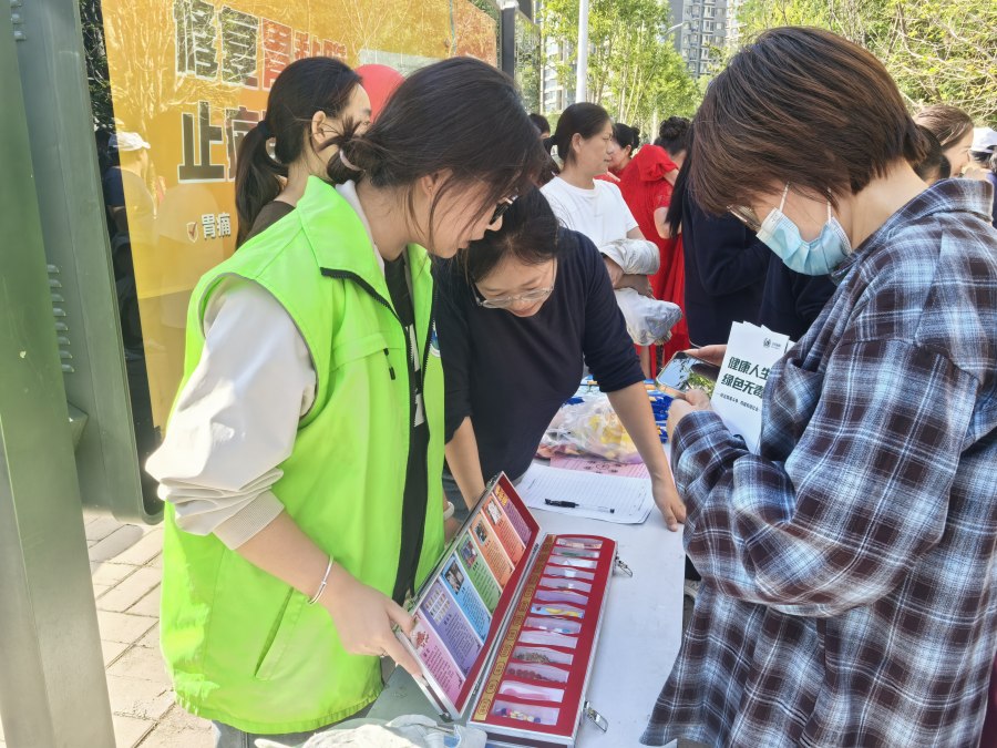为持续提升社区居民防范毒品意识,将禁毒知识送到群众身边,9月24日,在郑州市公安局禁毒支队的指导下,二七分局禁毒大队组织彩虹禁毒社工,在京广路街道红云路社区裕园二号院设置禁毒宣传摊位,以“摆摊”形式开展面对面、零距离的禁毒宣传活动。