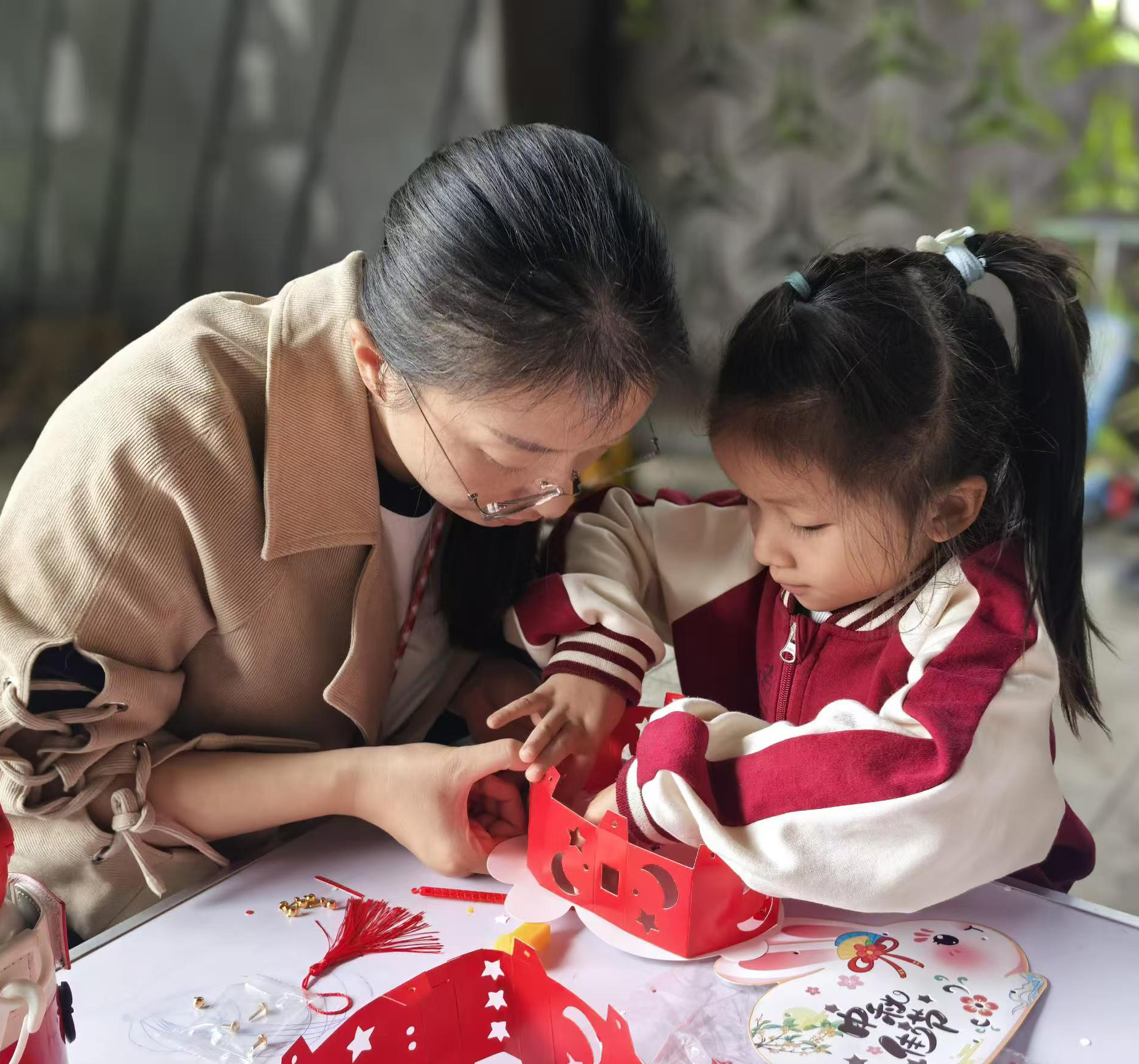 活动现场,工作人员早早准备好制作灯笼的材料包,孩子们在家长或工作人员的辅助下,兴趣盎然地按照步骤进行 折叠、粘贴、组装。虽然无需自行绘画创意,但动手拼装的过程同样充满乐趣和挑战性。不同年龄段的孩子专注于如何将零散的部件组合成一个个漂亮的、能发光的节日灯笼。完成后,孩子们提着自己亲手组装的、闪闪发光的小灯笼,脸上洋溢着成就感和节日的喜悦,家长也纷纷拍照留念,现场充满温馨的亲子合作氛围。