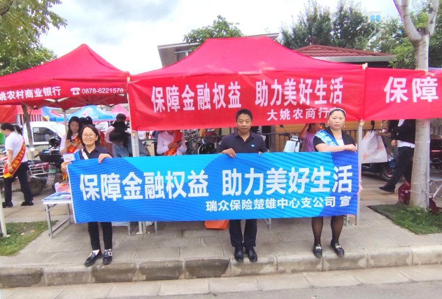 本次活动由国家金融监督管理总局大姚监管支局指导,大姚县农村商业银行牵头承办,辖内各银行保险机构协办,在大姚县华丰综合农贸市场开展,通过在人员密集区域摆摊设点,发放宣传教育折页80余份,帮助当地民众强化风险防范意识。我公司工作人员现场为当地民众讲解保险基础知识、防范金融诈骗、消费者权益保护等内容,用通俗易懂的语言为大家答疑解惑,提示防范金融风险、守护好钱袋子。