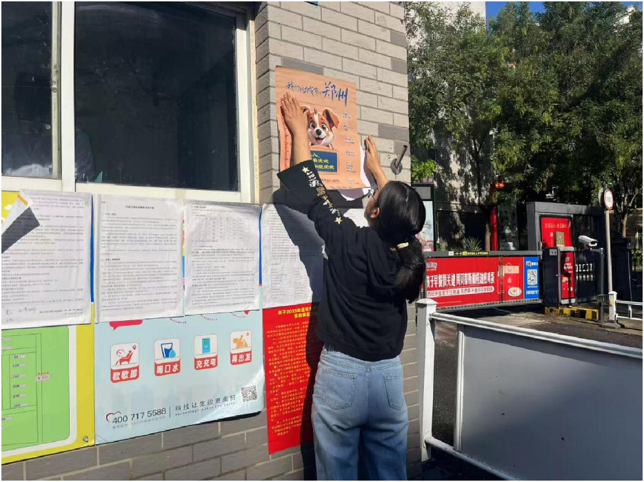 为进一步提升辖区居民文明养犬意识,营造整洁、安全、和谐的社区环境,近日,郑州市郑东新区如意湖办事处天时路社区积极开展文明养犬宣传活动。