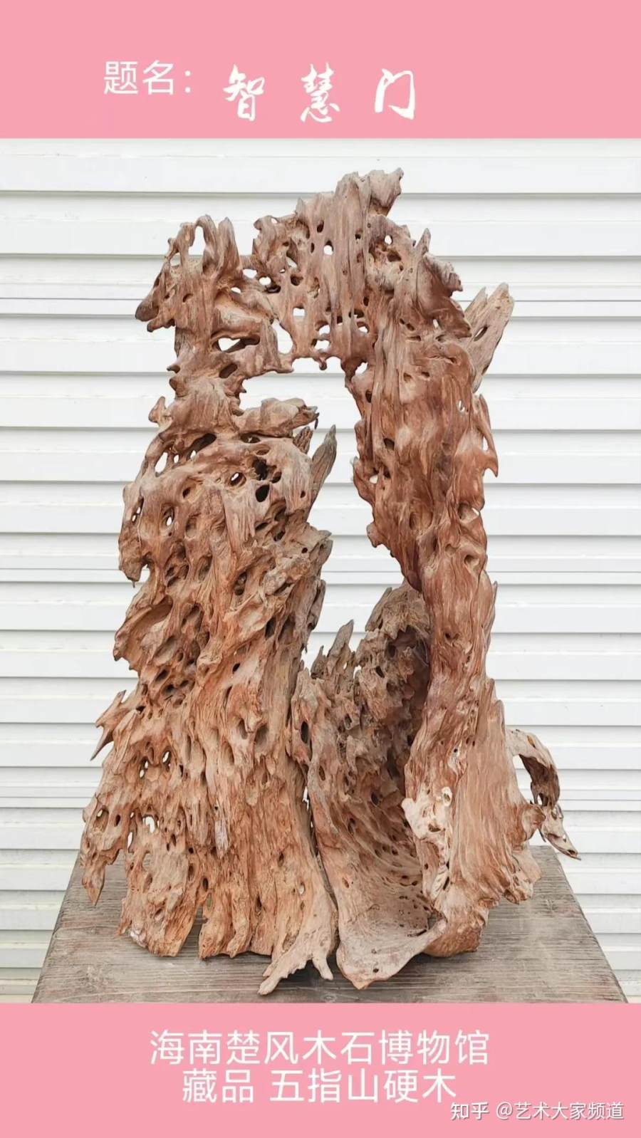 大约1993年秋天,我从湖北荆州南下,上岛不久,省兰花协会组织兰友五指山采兰,在深山一猎户家求得宝贝。除了山色云气苔痕,此作无一丝人工刀斫斧劈痕迹,浑然天成,质地如镶玉嵌珠,形似一门,故名《智慧门》。
