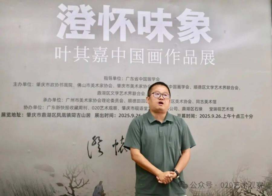 9月26日上午,“澄怀味象——叶其嘉中国画作品展”在肇庆市鼎湖区凤凰镇同古美术馆正式开幕。本次展览由广东省中国画学会指导,肇庆市政协书画院、佛山市美术家协会、肇庆市美术家协会、肇庆市中国画学会、顺德区文学艺术界联合会、鼎湖区文学艺术界联合会、肇庆画院联合主办,广州市美术家协会理论委员会、顺德田园国画院、鼎湖区美术家协会、同古美术馆承办,广东新快报收藏周刊、020艺术观察等机构协办,共展出叶其嘉先生近期创作的作品30幅。
