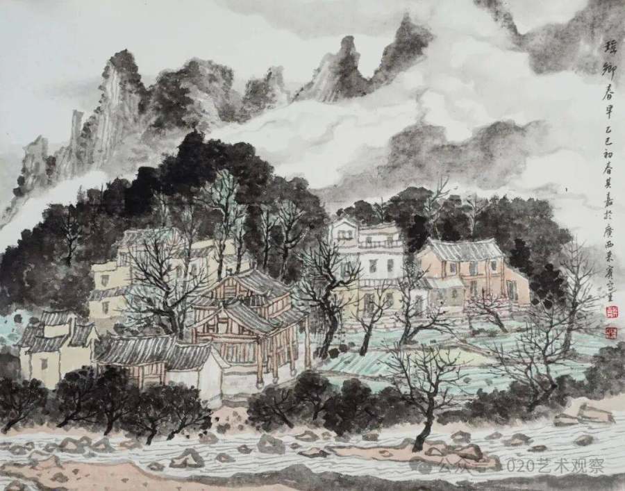 • 莫肇生(广东省中国画学会副会长):“提到顺德,人们总会想到桑基鱼塘的田园印象,以及改革开放后遍地兴起的工厂景象。顺德人勤奋向上、与人为善、充满智慧,且性格低调、不事张扬——正是这样的顺德基因,造就了其嘉兄独特的笔墨语言。看其嘉的作品,从早期的勾线重彩,到如今的笔墨洒脱,从专注水乡题材到拓展至更广阔的山川景致,始终离不开顺德乡土文化的‘根’,这便是叶其嘉艺术语言的核心。此次展出的作品中,他跳出了以往固有的水乡题材局限,走向了更广阔的艺术空间,这份突破尤为难得。”