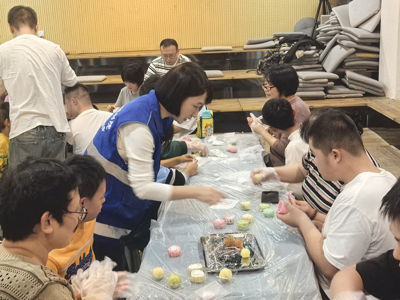 本次活动旨在通过亲身体验,让孩子们深入了解中秋习俗,锻炼动手能力与协作精神,同时增进亲子情感,传递社会对社区困境儿童群体的关怀。活动伊始,郑州市儿童福利院蓝手杖志愿服务队负责人首先简要介绍了活动目的、流程及安全注意事项。随后,在志愿者的耐心演示下,孩子们与家长一同学习了冰皮月饼的制作步骤——从揉制面皮、包裹馅料,到使用模具压出精美造型。孩子们兴致勃勃,充分发挥想象力,运用不同颜色的冰皮和各式模具,精心制作出一个个独具特色的月饼。展示环节,孩子们手捧自己的劳动成果,脸上洋溢着自豪与满足的笑容。整个过程中,欢声笑语不断,亲子之间默契配合,场面温馨动人。许多家长表示,此次活动不仅让孩子们在实践中感受到了传统节日的文化内涵,体验了动手创造的乐趣,更在合作与分享中增进了亲子关系,感受到了社会大家庭的温暖与关爱。