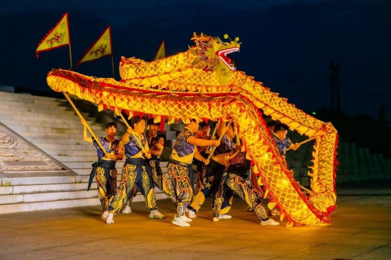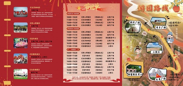 国庆期间,园区每日好戏连台。《大河回响》大型舞台剧,汇聚国家级非遗鱼灯舞、气势恢宏的舞龙、古朴厚重的莲鼓舞与盘鼓舞等精彩段落,以艺术化的手法再现黄河文化的磅礴气韵与千年回响。