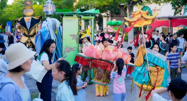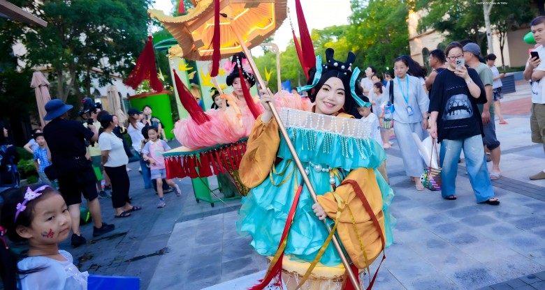 景区创新引入“国风剧情互动巡游”与“剧本游”玩法,大幅提升游客参与感。大型非遗宫灯展演《宫灯传》巡游记,以国家级非遗“宫灯制作技艺”为灵感,演员复刻各类巨型宫灯与游客互动,营造浓郁的中秋佳节氛围;《家国同庆》主题大巡游则汇聚各式华美妆造队伍,形成流动的风景线。